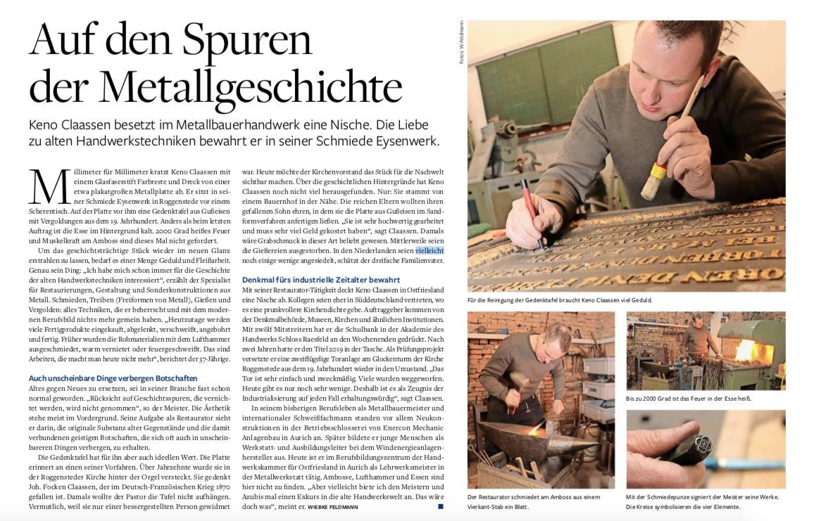 Wir sind ein kleiner Meisterbetrieb im Herzen Ostfrieslands. Unsere Spezialgebiete sind Metallgestalltung, Restaurierungen von Kulturgütern und Sonderkonstruktionen. Wenn Sie auf der Suche nach schönen Dingen aus Metall sind oder ihre wertvollen Handwerksarbeiten für die Nachwelt erhalten wollen, dann sprechen Sie und gerne an. Zudem sind wir die Spezialisten wenn es um Sonderlösungen geht. Fordern Sie uns! Wir unterstützen Sie gern.
